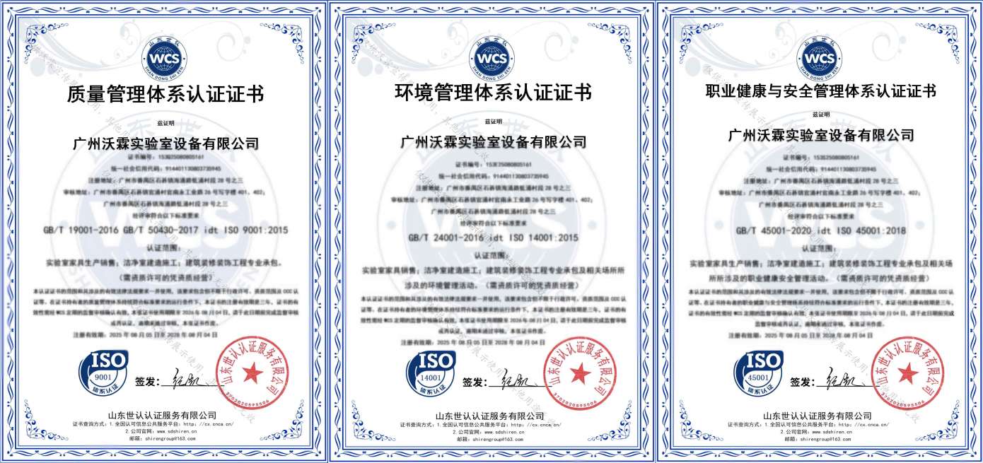 沃霖實(shí)驗(yàn)室是潔凈行業(yè)優(yōu)秀施工建造企業(yè),擁有建筑裝修工程專業(yè)承包二級(jí)、電子與智能化工程專業(yè)承包二級(jí)、環(huán)保工程專業(yè)承包二級(jí)、建筑機(jī)電安裝工程專業(yè)承包二級(jí)等資質(zhì)。先后通過(guò)ISO9001:2015、ISO14001:2015、ISO45001:2018 認(rèn)證,知識(shí)產(chǎn)權(quán)管理體系認(rèn)證,擁有多項(xiàng)發(fā)明專利、二十余項(xiàng)實(shí)用型專利及十余項(xiàng)軟件著作專利。